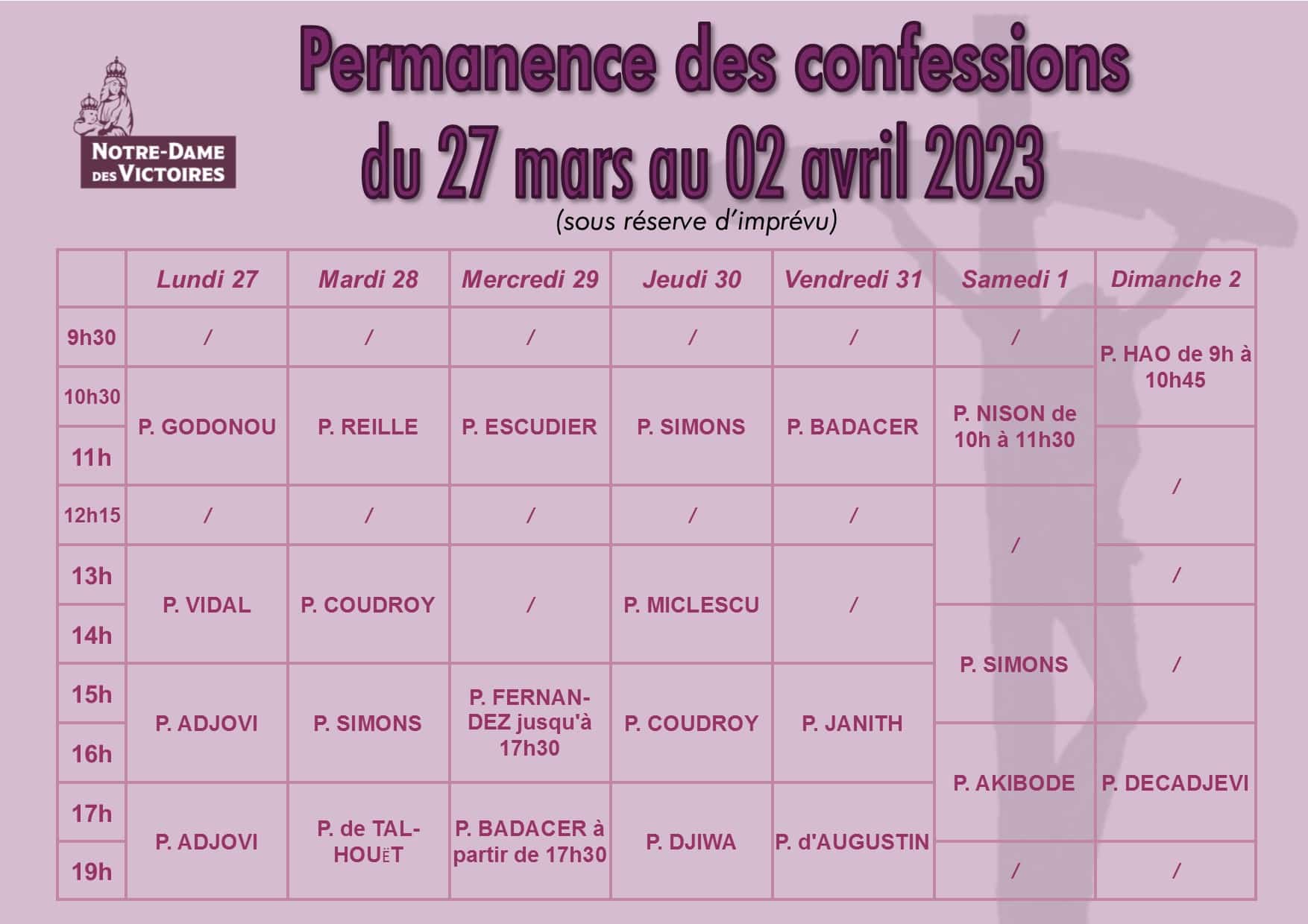 - Thursday: 12:15 and 7 pm + 2:30 pm (broadcast on Radio Notre-Dame 100.7)