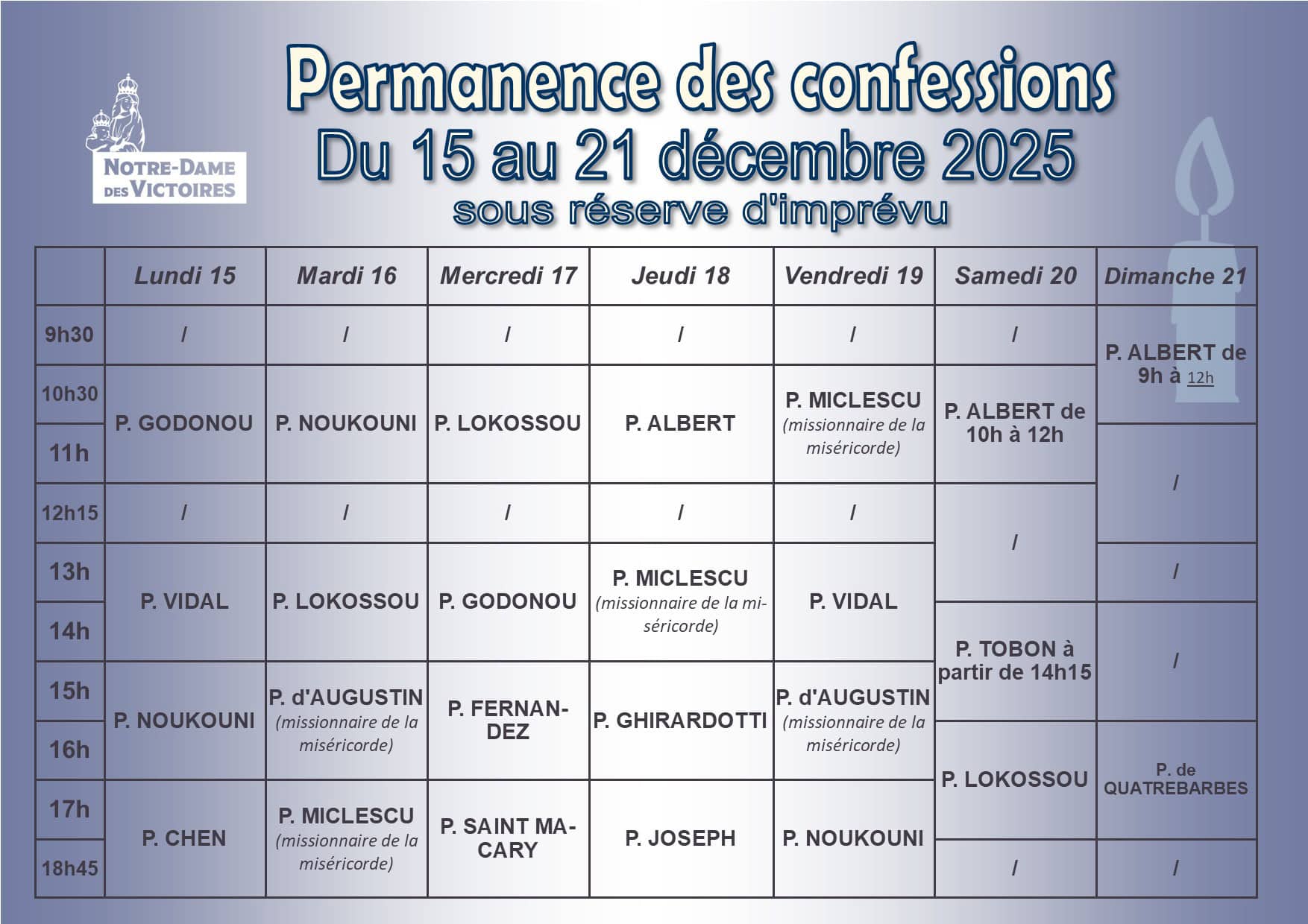Il est possible de se confesser tous les jours à Notre-Dame des Victoires :