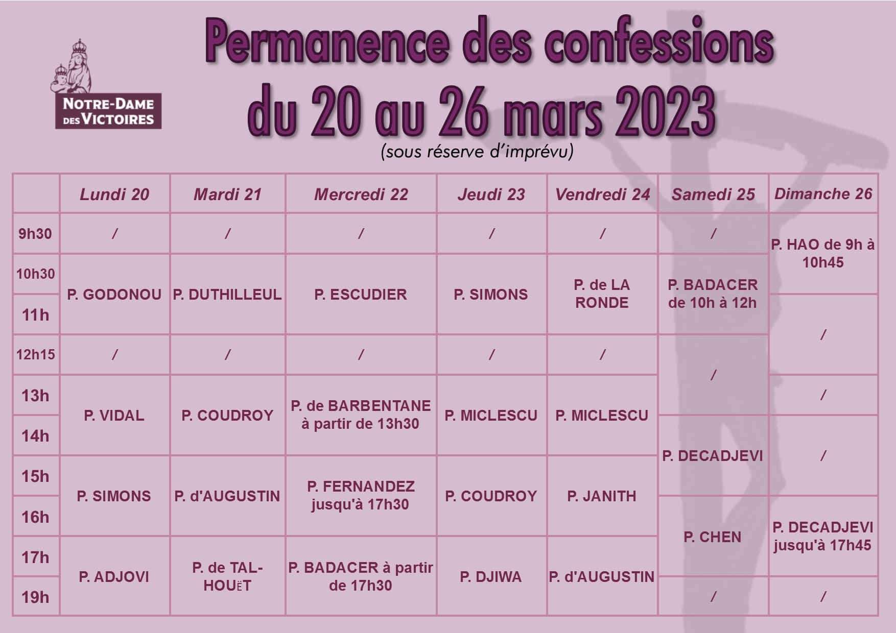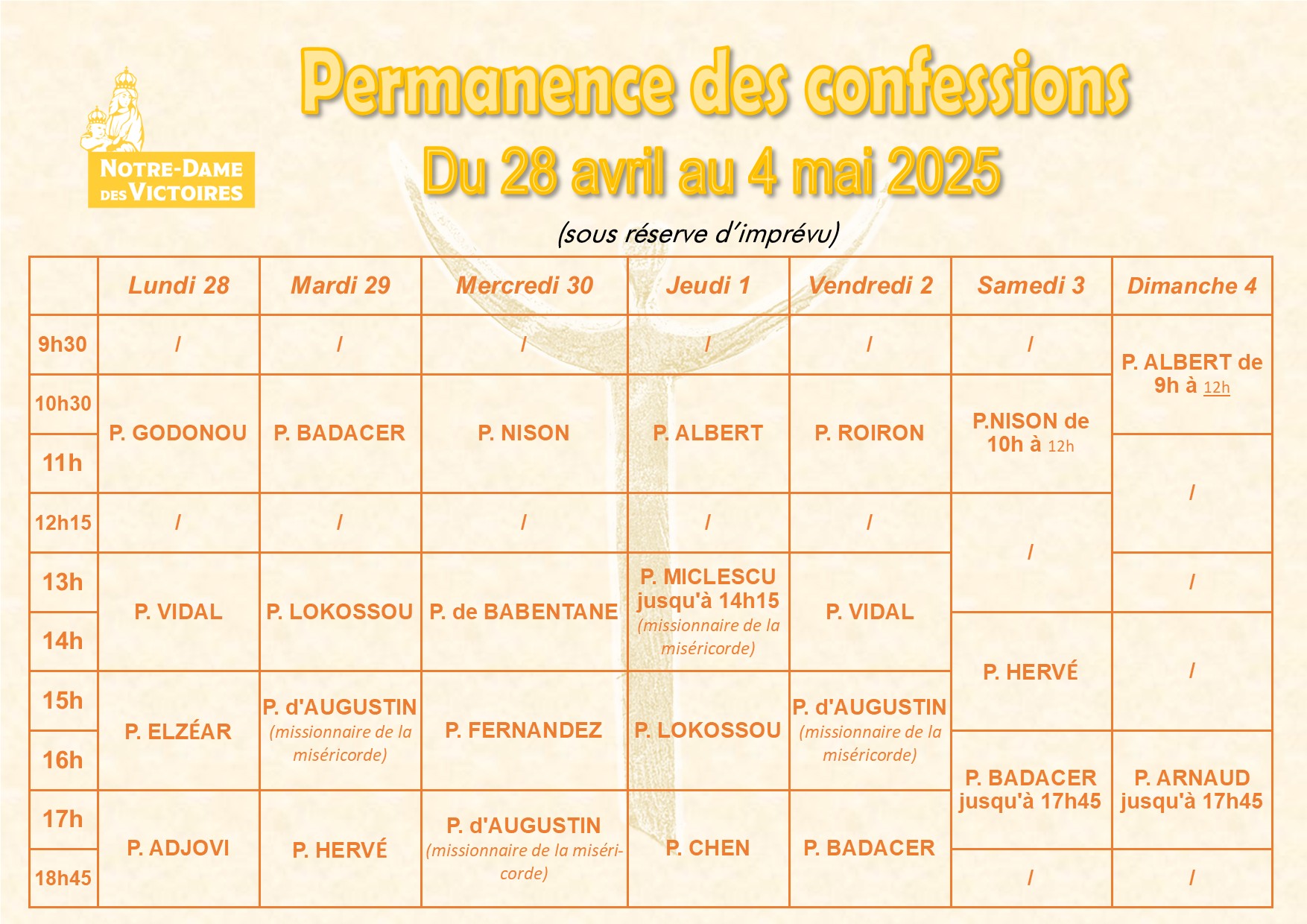 Il est possible de se confesser tous les jours à Notre-Dame des Victoires :