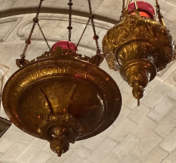Les lampes placées au-dessus de la chapelle de la Vierge sont aussi des ex-votos ! La plus imposante vient d’ailleurs de l’impératrice Eugénie, épouse de Napoléon III. Son prénom est gravé dessus et la date de ce don : 1859.